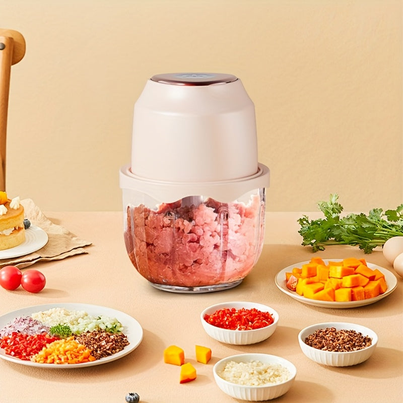 Picadora de Carne Eléctrica Recargable por USB y Triturador de Verduras de 22000 RPM - Aparato Multifunción 6 en 1 con Tarro de Vidrio, 6 Cuchillas de Acero Inoxidable, Diseño Compacto para Cocina Casera, Preparación de Alimentos, Batidos, Salsas, Herram