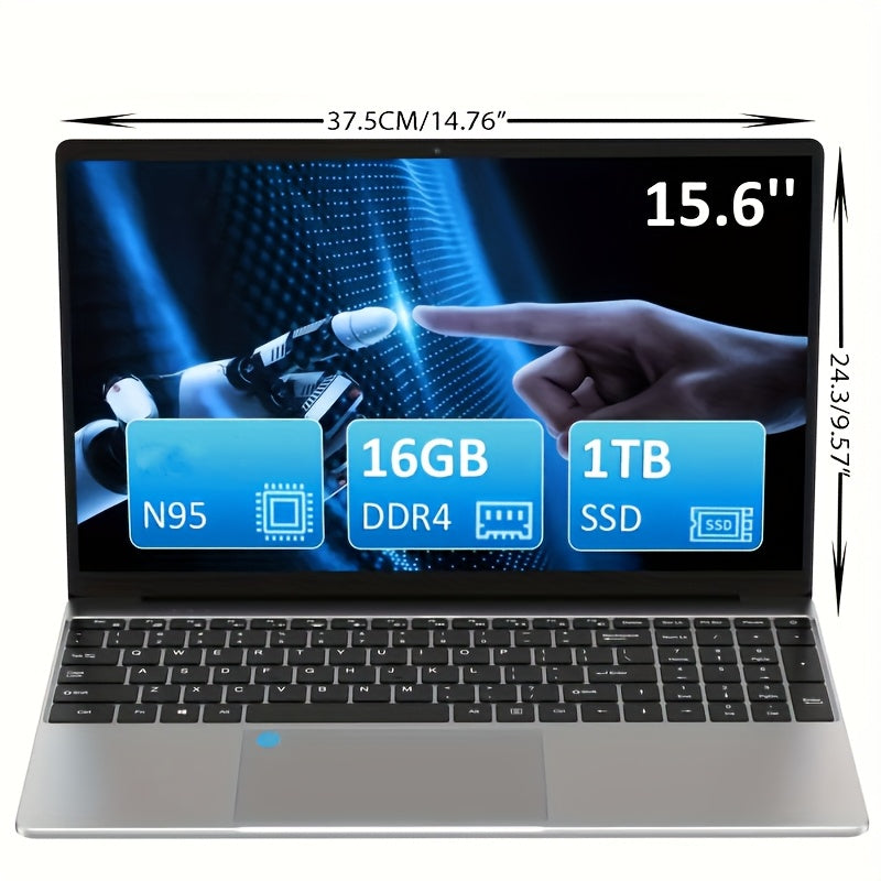 Portátil de 15.6 Pulgadas con 8GB RAM + SSD de 1024GB, Procesador N95, Bisagra 180°, WiFi 6, sin varillas 5.2, USB, Tipo-C, HDTV, Batería de 5000mAh, Altavoces Estéreo Dobles, WiFi Dual Band 5G, Regalo Ideal para Amigos