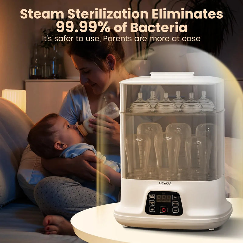HEYAXA Calentador y secadora de biberones, vapor electrico para biberones avanzado, seguro y confiable, ajuste universal para todos los articulos de bebe, bomba de leche para biberones, pantalla tactil LED, apagado automatico