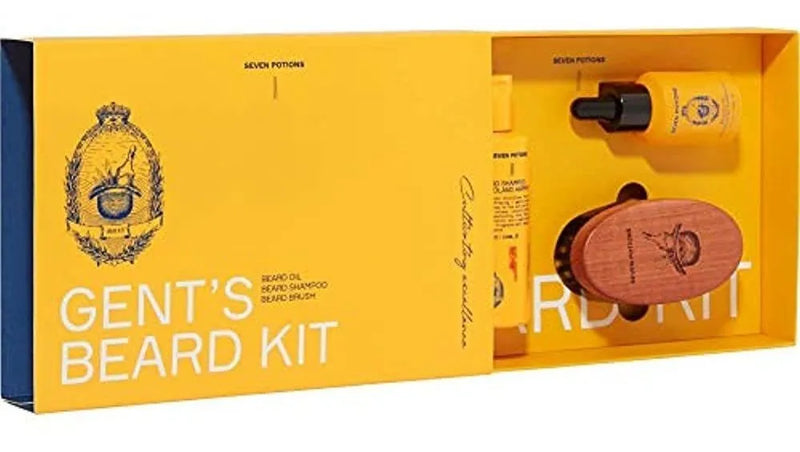Siete pociones set barba barba barba champú de aceite y cepillo para polvo para barba hacer para el último kit de cuidado para la barba y gran conjunto de barba de regalo