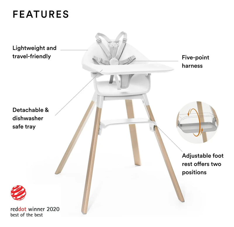 Todo en uno: la silla alta Stokke Clikk aborda las necesidades de cada padre, todo en una caja Prepárate para comidas más fáciles y limpias en solo 123 Clikk. Incluye silla alta, bandeja y arnés de seguridad de cinco puntos. Además, es ligero, duradero y apto para viajes.