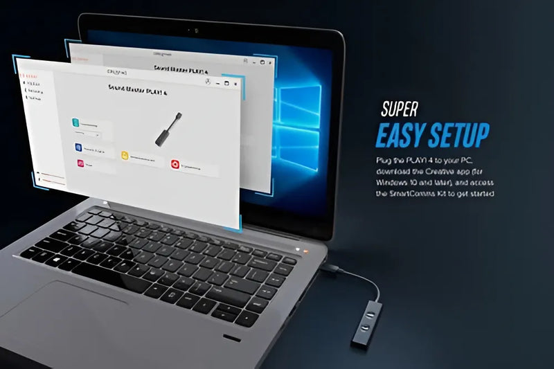El software incluido es la aplicación Creative con SmartComms Kit para PC con Windows (Versión 10 y superior) y el Panel de Control Sound Blaster para PC con Windows y Mac. Este dispositivo cuenta con un botón de ecualización incorporado, refuerzo de graves y ecualizadores dinámicos.