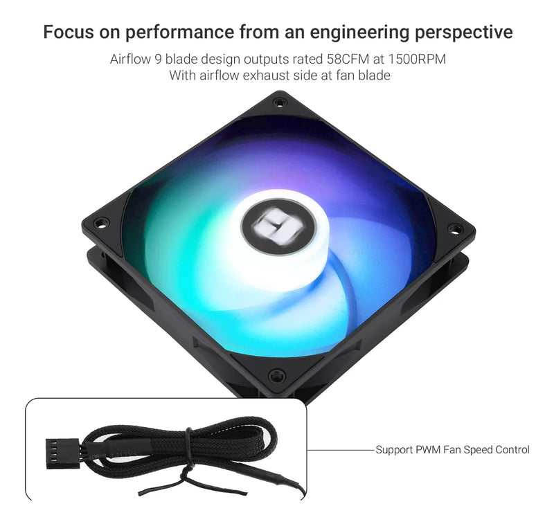 ,-Diseno de viento inverso: y la direccion estandar es diferente, la superficie de la pala del ventilador para la direccion del viento, para el conducto de aire del chasis y el efecto de luz de la unidad del diseno de viento inverso, el alto volumen de aire puede proporcionar un efecto de enfriamiento.