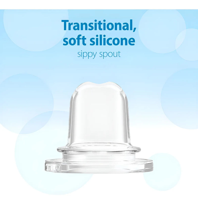 Las asas de silicona 100% son extraíbles y se adaptan a la mayoría de botellas angosto y vasos. La tapa a presión mantiene la boquilla limpia cuando estás en movimiento. La boquilla para beber se adapta a cualquier botella de Dr. Brown Options+ de angosto ancho después de quitar la ventilación.