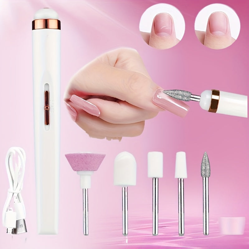 Kit de 5+1, 6 piezas para Taladro Eléctrico de Uñas con Quitaúñas y Pulidor Recargable Beige Claro para Manicura de Manos y Pies