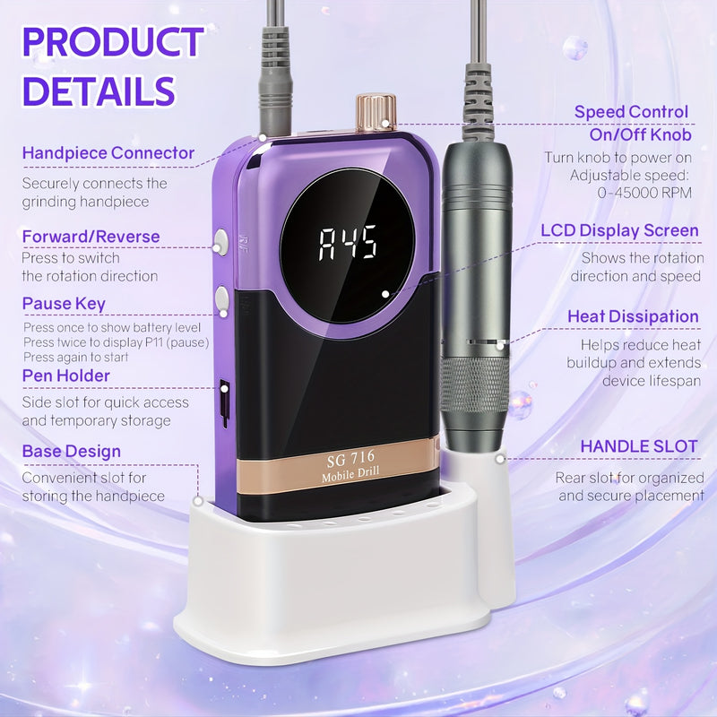 Kit de Máquina Profesional para Uñas Recargable 45000 RPM con Lima Eléctrica para Manicura, Eliminación y Pulido de Gel