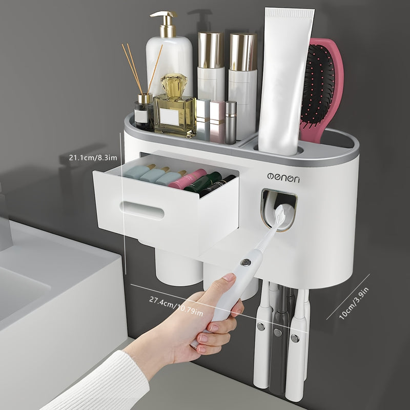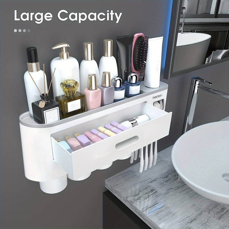 1 Juego De 2/3/4 Piezas, Porta Cepillos De Dientes Para Baños, Vasos Porta Cepillos, Montado En La Pared Con Dispensador De Pasta De Dientes, Bandeja De Gran Capacidad, 2 Cajones Para Cosméticos, Organizador De Baño Y Accesorios De Baño