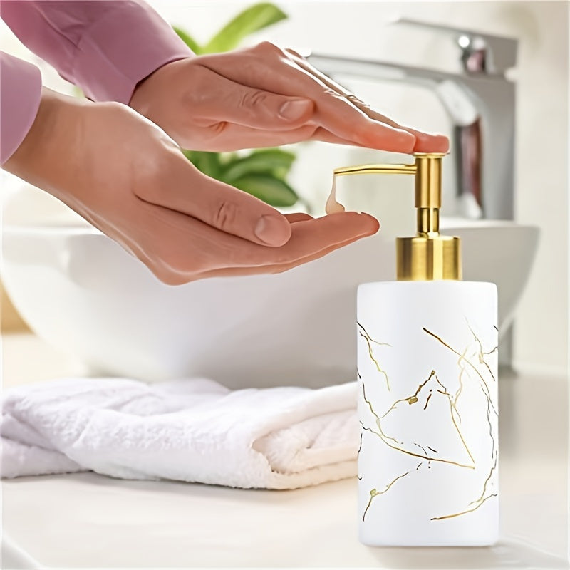 1pc Dispensador de jabón con diseño de mármol, botella de loción de encimera con bomba, contenedor de loción para baño, botella vacía recargable para champú, gel de ducha y jabón de manos, accesorios de baño, decoración del hogar, muebles para el hogar