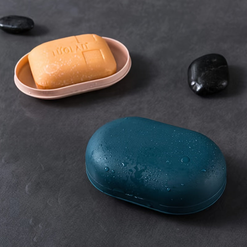 1pc Jabonera Ovalada y Linda con Tapa - Portátil, Diseño de Drenaje para la Organización del Baño