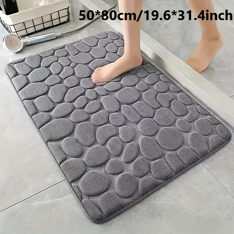 Alfombra de Baño Hecha a Mano de Vellón de Coral Peluche - Antideslizante con Patrón de Piedras Geométricas, Lavable en Máquina y Absorbente para Ducha, Bañera y Entrada, Base Duradera de Poliéster, Alfombra de Baño