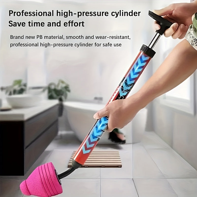1 desatascador manual de alta presión para inodoro, con boquilla flexible giratoria 360° de acero inoxidable, a prueba de fugas, color rojo, eficaz para destapar drenajes