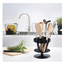 Ya puede organizar sus utensilios de cocina sin enredos y mantenerlos siempre al alcance de la mano. Las ranuras individuales y el extremo curvado permiten guardar los utensilios independientemente y cogerlos con facilidad.
