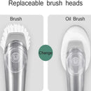 Descubre la practicidad de un cepillo y esponja combinados en un solo dispositivo con nuestro cepillo multifuncional. Su diseño inteligente ofrece dos cabezales remplazables: un lado con cerdas para limpiar a fondo, y el otro con una esponja suave para superficies más delicadas.
