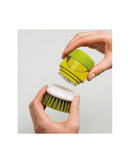 Este cepillo cuenta con un depósito de detergente líquido fácil de rellenar que dispensa la cantidad requerida de jabón con una simple pulsación del botón superior.