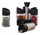 Organizador giratorio para especias, juego de 6 frascos transparentes para condimentos, saleros y pimenteros, estante para condimentos, recipiente para almacenamiento de ollas de especias, vinagrera con tapa y base de soporte 360.