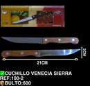 cuchillos para carne esta dentado para ayudar a cortar las comidas mas dificiles. los mangos ergonomicos de madera de fresno ofrecen un agarre comodo mientras que la hoja extra afilada facilita el corte. lavar a mano unicamente.