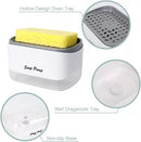 El dispensador de jabon perfecto con soporte de esponja, presiona hacia abajo la placa superior y distribuye el jabon directamente sobre la esponja, la operacion con una sola mano te permite lavar los platos fácilmente y ahorrar tiempo