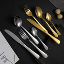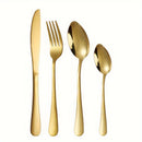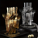Juego de Cubiertos de Acero Inoxidable Dorado de 24 Piezas con Elegante Soporte Metálico - Incluye Cuchillos para Bistec, Tenedores y Tenedores para Postres, Cucharas - Perfecto para el Hogar, Restaurante, Fiesta, Boda