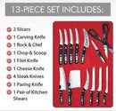 Para el uso diario en la cocina, el juego de cuchillos de 13 piezas es sin duda una herramienta útil. Pica, rebana, corta y recorta con este compañero de cocina ideal.