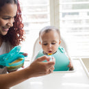 Set bowl viajero para almacenar y separar los alimentos de forma segura. La cuchara a presión se mantiene limpia y segura. El mango de agarre cómodo se puede usar con ambas manos.
