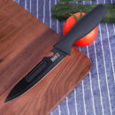 • Se utiliza el metal de titanio negro natural en la hoja, en lugar de pintura en aerosol negra. No habrá problemas como la caída del tinte, la seguridad alimentaria y los problemas estéticos causados por arañazos en la superficie del cuchillo.