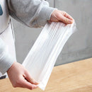 Un rollo de aproximadamente 200 bolsas con cierre a presión para almacenamiento de alimentos; ideales para contacto alimentario, transporte temporal y almacenamiento esencial en la cocina