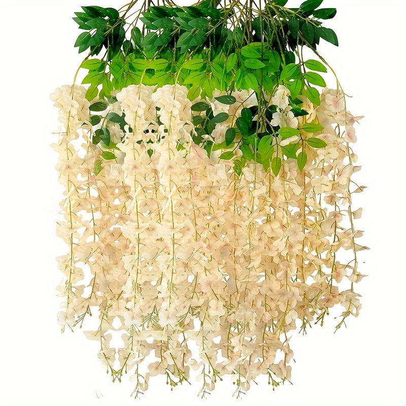 12 Piezas, Flores Colgantes, Decoración Artificial Para Bodas, Guirnalda De Glicina, Exuberantes Enredaderas De Flores De Seda Para Decoración De Bodas Al Aire Libre, Arco De Fondo, Fiesta, Sala, Pared