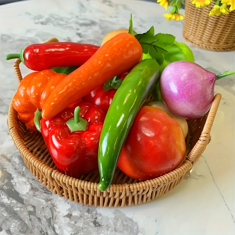 Conjunto de 12 piezas de frutas y verduras realistas, adecuado para decoración del hogar - incluyendo tomates, pepinos, pimientos, etc. - perfecto para exhibir en mesas de comedor, armarios y restaurantes