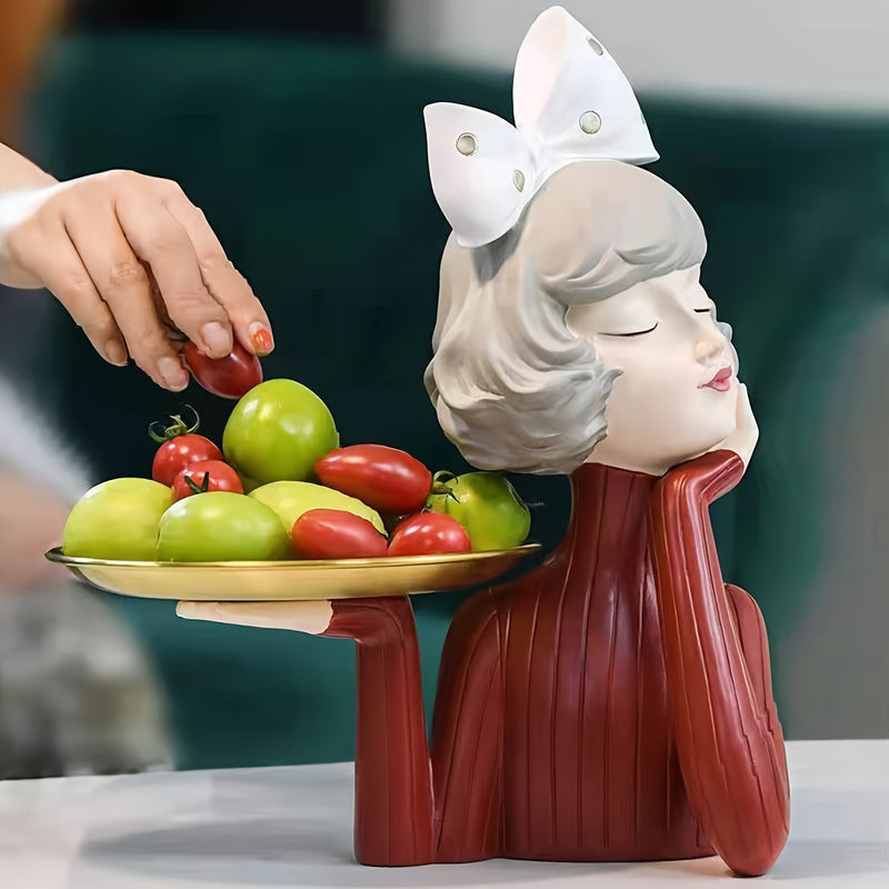 Figura Artística de Chica Abstracta con Bandeja de Almacenamiento - Decoración para el Hogar en Resina Pintada a Mano, No Necesita Baterías, Ideal para Navidad, Perfecta para Acción de Gracias, Sin Contacto con Alimentos