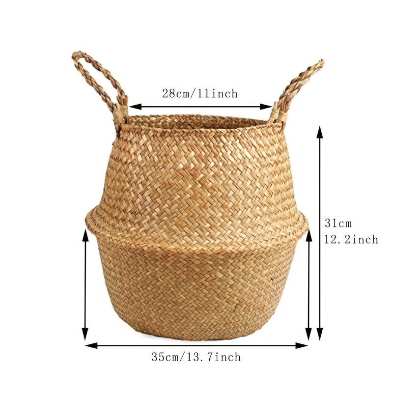 1 Pieza, Cesta De Mimbre Tejida A Mano Con Algas Marinas, Añade Estilo Y Funcionalidad A La Decoración De Tu Hogar Con Este Macetero Tejido
