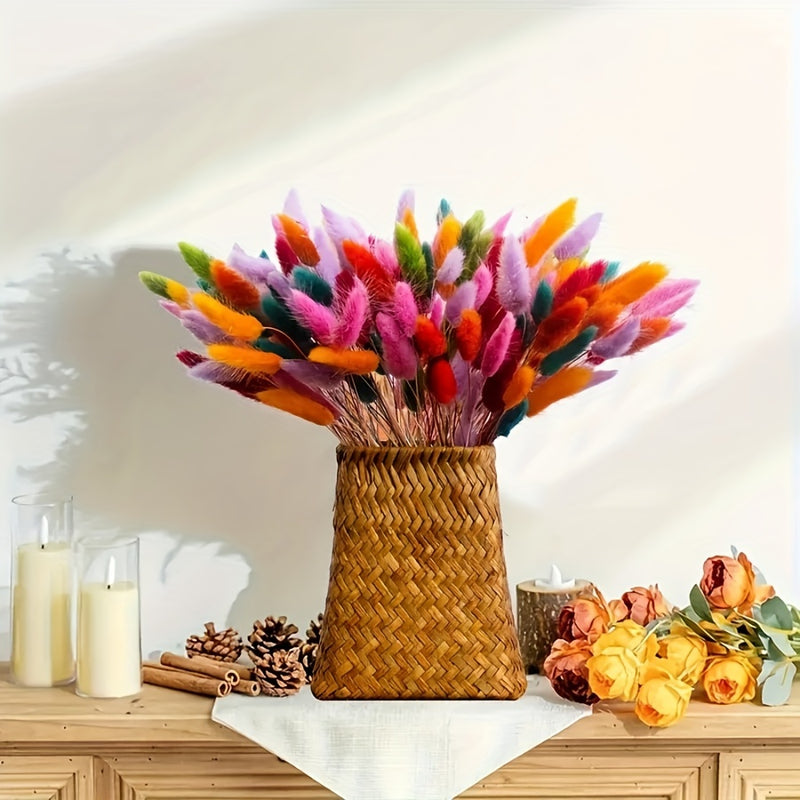 Ramo de 140 piezas de Hierba de Cola de Conejo Seca Multicolor Estilo Boho Chic - Ideal para Decoración del Hogar, Bodas, Fiestas y Festividades (Halloween, Navidad, Pascua, San Valentín, Acción de Gracias)