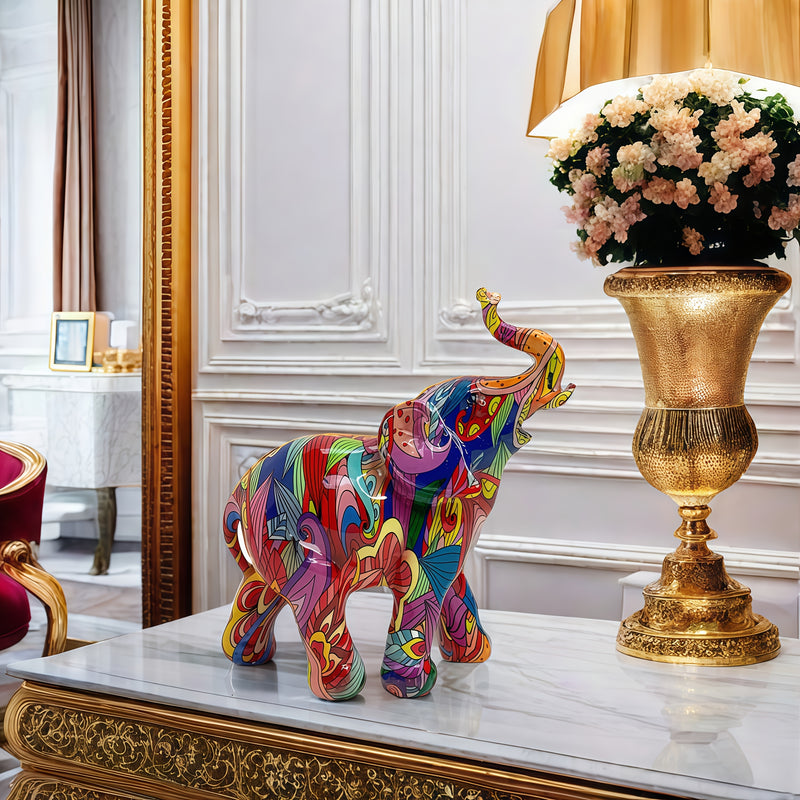 1pc Estatua de resina de elefante colorida, decoración versátil para el hogar para la sala de estar, el soporte de TV, el estudio, la oficina - Ideal para Navidad, Acción de Gracias, Año Nuevo, Día de San Valentín, celebraciones univer