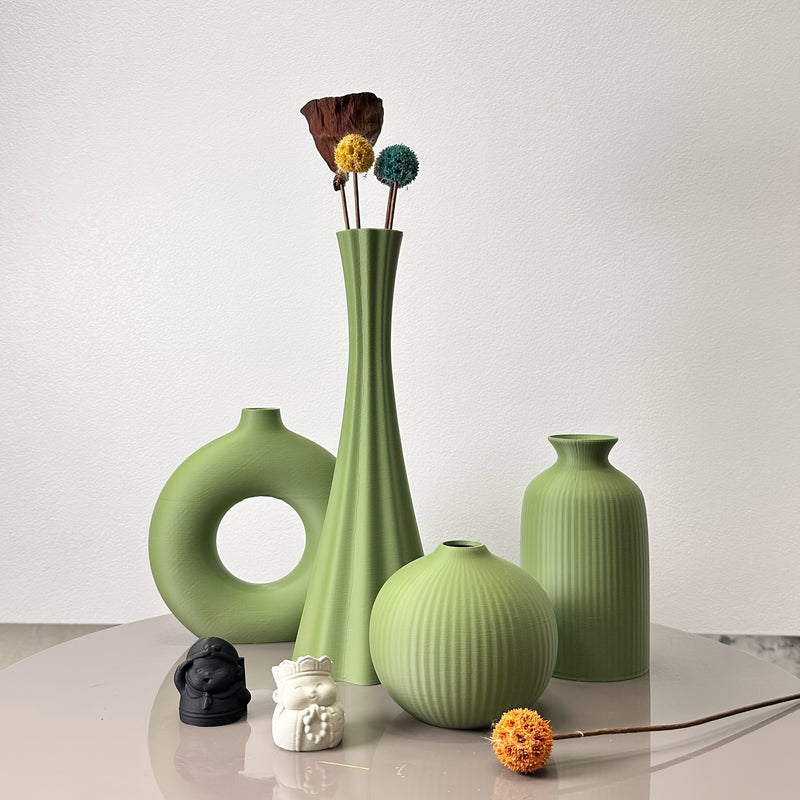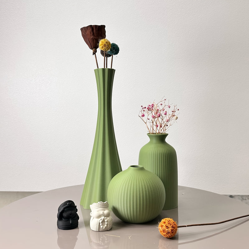 4 piezas de jarrones artísticos de color verde oliva - Jarrones de flores modernos y bohemios de plástico para el hogar, oficina y decoración de entrada - Jarrones redondos en tonos de verde y blanco, decoración del hogar