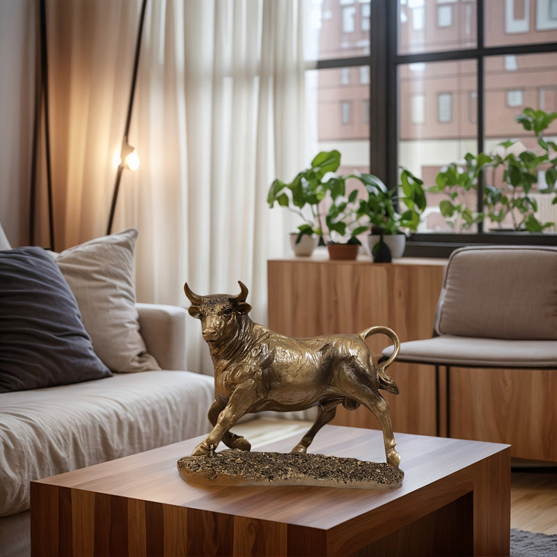 Escultura de toro dorado de lujo TY, estatua de toro en resina para decoración de hogar y oficina, adorno versátil para interiores y exteriores, no requiere electricidad