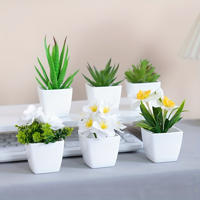1SET-6pcs Juego de macetas de plantas de simulación, adecuado para el hogar, decoración del centro de mesa, decoración de escritorio de oficina, toque real, maceta suculenta artificial mini