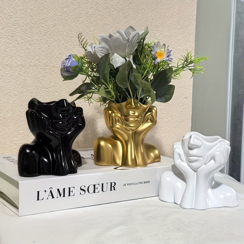 Jarrón Retrato - Escultura Moderna de Resina en Medio Cuerpo para Suculentas, Hidroponía y Decoración Floral - Jarrón Geométrico Artístico, Ideal para Sala o Mesa de Comedor