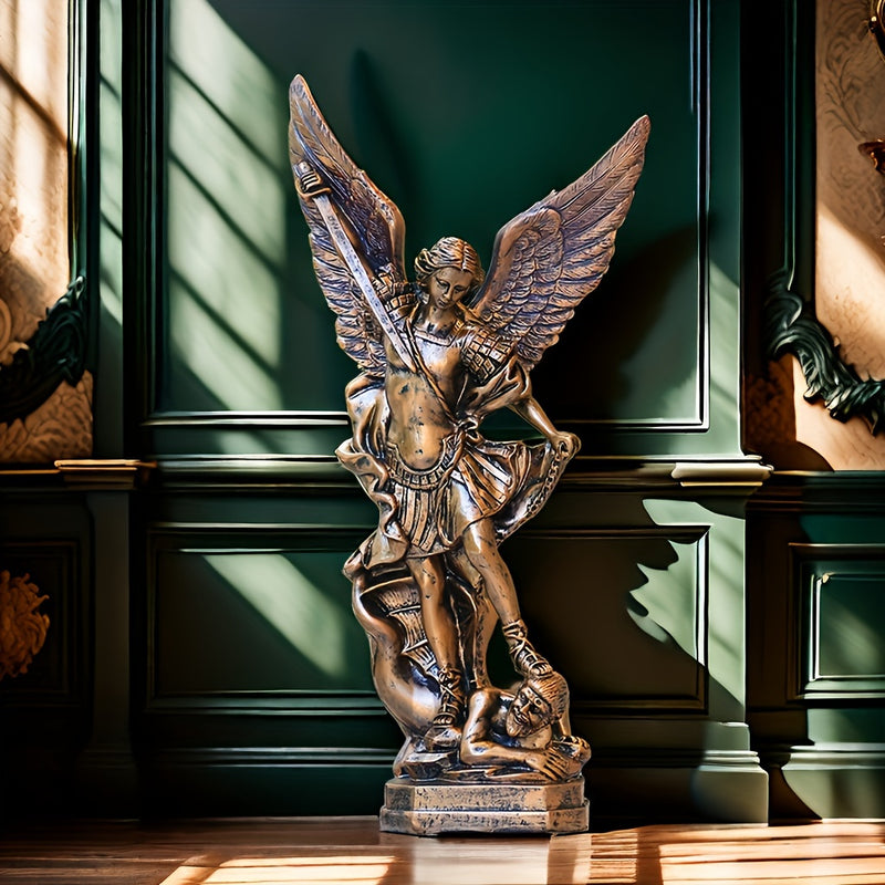1pc Estatua de San Miguel Arcángel, Figura de San Miguel Arcángel de Resina Bronce de 31.75cm, Decoración de Temática Religiosa para Uso Interior y Exterior, No Requiere Electricidad, Decoración de Ángel