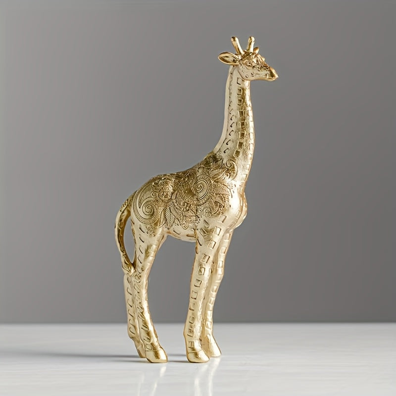 Conjunto de 2 piezas de Adorno de Jirafa, Estatua Dorada de Arte y Artesanía, para Decoración de Estantería, Sala de Estar, Oficina, Café, Decoración de Mesa, Entrada, Decoración de Invierno, Navidad y Año Nuevo