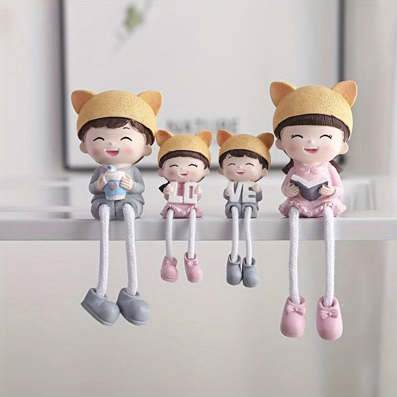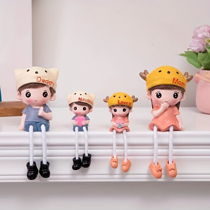 Encantadora Figura de Familia de Dibujos Animados - Muñecos Colgantes de Resina para Decoración del Hogar y Coche, Regalo Perfecto para Inauguración de Casa