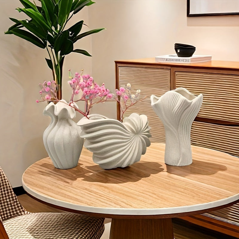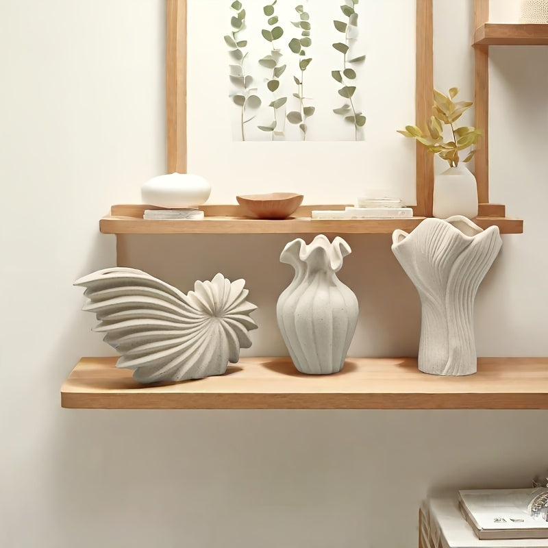 3 piezas Conjunto de jarrones decorativos de cerámica de estilo bohemio - Solo lavado a mano, tema floral, forma ovalada, ideal para Navidad, Halloween, Janucá, Acción de Gracias, Día de San Patricio decoración