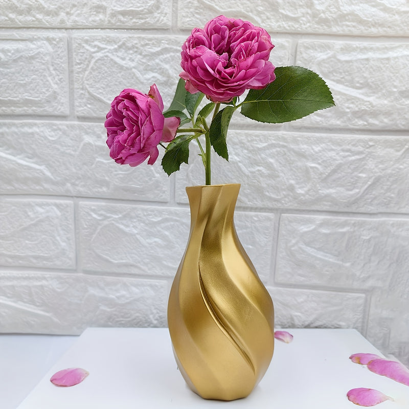 1 florero decorativo elegante de resina dorada con diseño floral rosa, estilo americano en forma de cilindro espiral, para sala, balcón o escritorio de oficina, decoración para el hogar