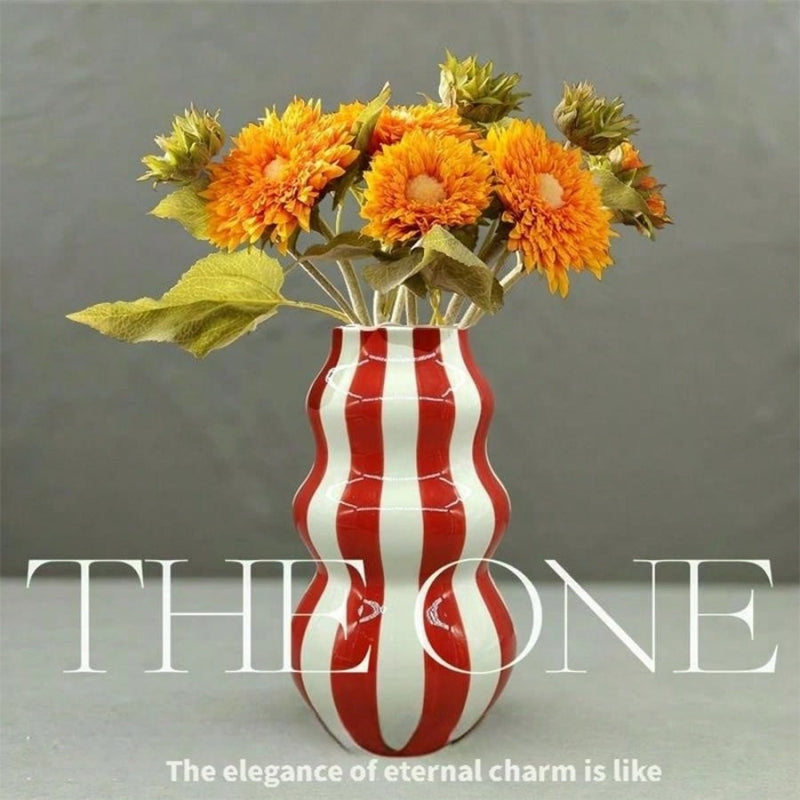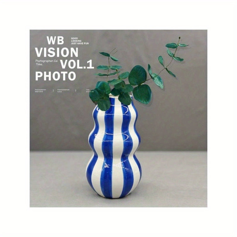 Jarrón de cerámica rústica con rayas, diseño asimétrico en forma de calabaza abstracta, en blanco y negro, decoración para sala, estante o estilo granja, regalo para el Día de la Madre