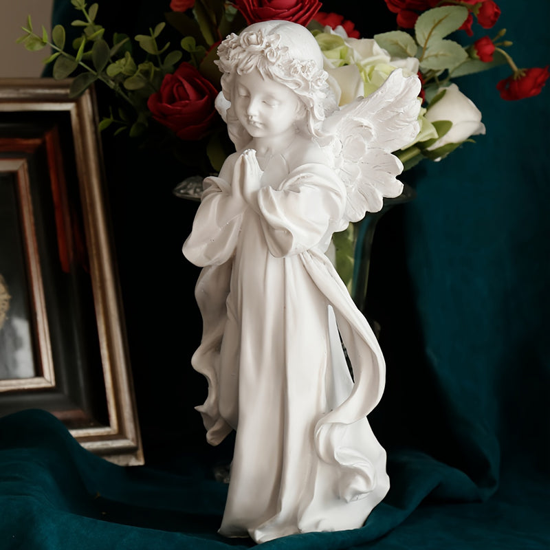 2 estatuas de ángel de resina, estilo retro con acabado blanco, decoración versátil para interiores y exteriores, ideal para decoración del hogar y Pascua, no requiere electricidad, acentos serenos para jardín y habitación, diseño elegante