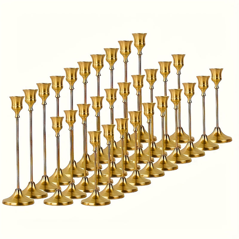 Un juego de 30 portavelas dorados de latón, candelabros al por mayor, decoración vintage para velas, soportes metálicos adecuados para la decoración del hogar, centro de mesa festivo y chimenea, Ideal para Navidad, Perfecto para Acción de Gracias