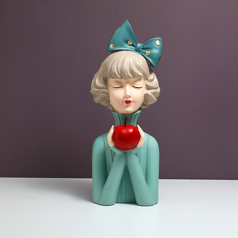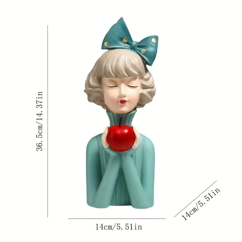 Figura Contemporánea de Resina de Chica del Café – Decoración Artística con Símbolo de Paz, Diseño Pintado a Mano con Orejas de Conejo y Gafas, Perfecta para Decoración de Hogar u Oficina
