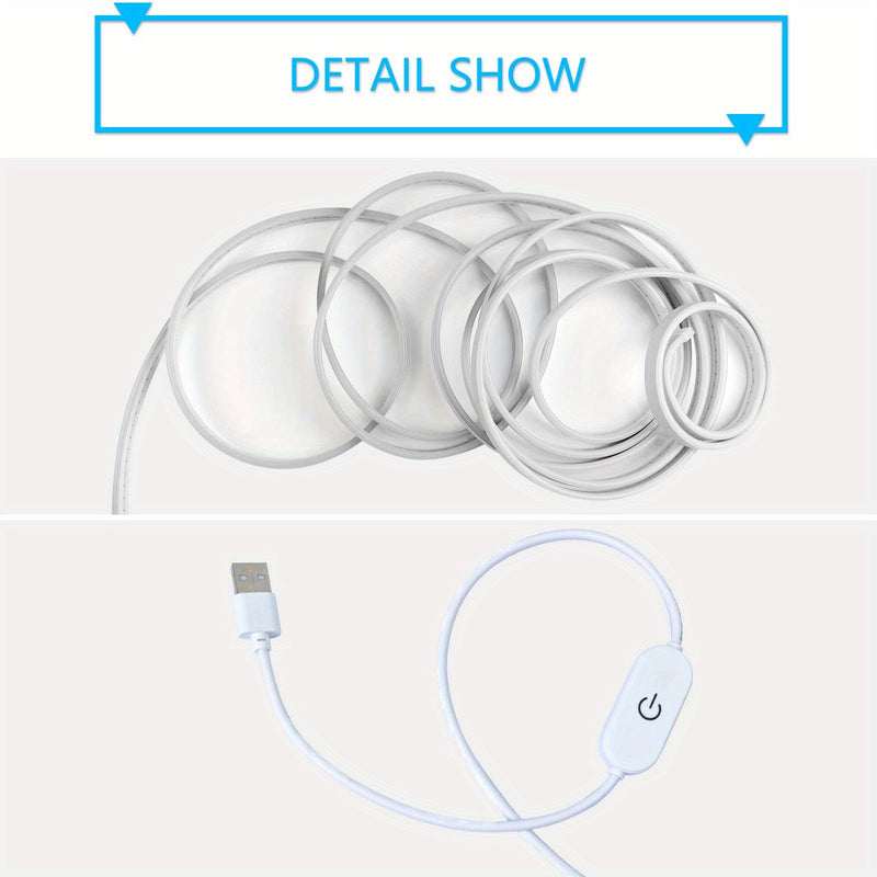 1 pieza de tira de luz neón blanca de 1-5m (3.28-16.4 pies) con voltaje seguro de 5V, conexión USB táctil, se puede cortar y doblar, adecuada para decoración interior, paisajes exteriores, ambiente festivo, escenas de bricolaje