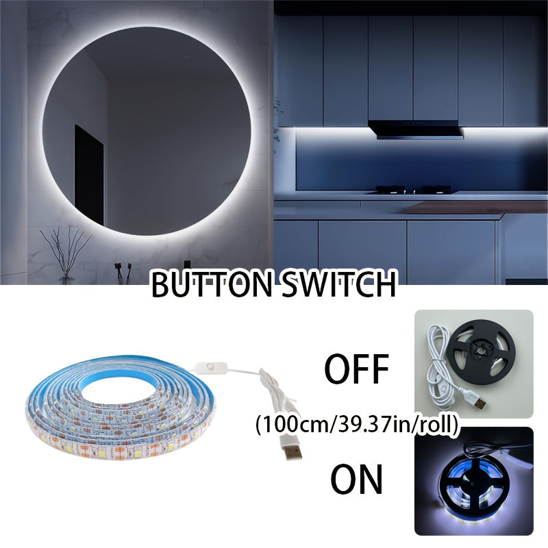 1 pza., Luces de tira LED blancas, Luces de tira LED blancas frías 6000K, Luces de tira LED flexibles brillantes para espejo de tocador, gabinete, cocina, dormitorio, para eventos/tiendas/almacenes