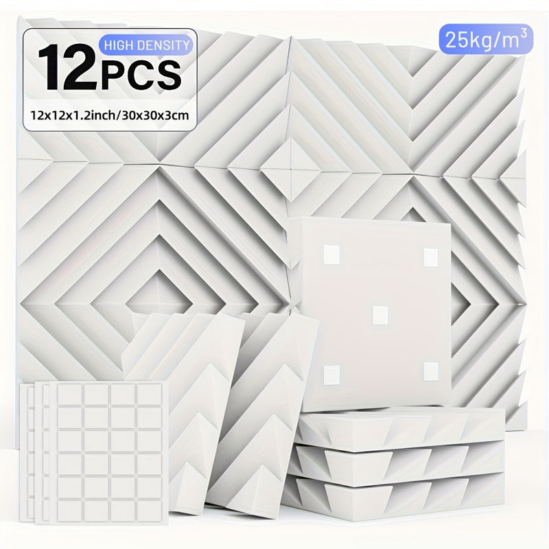 12 piezas de tablero aislante acústico ignífugo de alta densidad, con cinta adhesiva doble cara, diseño DIY libre, panel decorativo para paredes que reduce el ruido, ideal para estudios de grabación, oficinas y salas de juegos