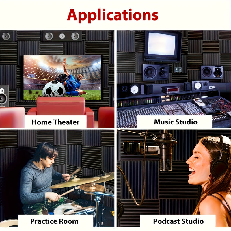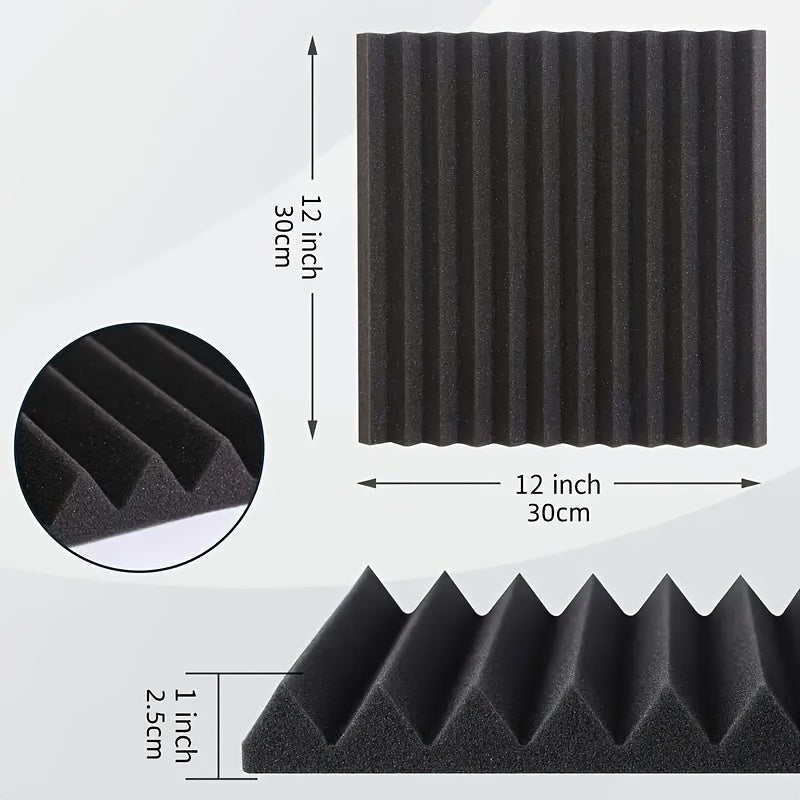 24 piezas de paneles acústicos de espuma negra de alta densidad, 30.48x30.48x2.54 cm, retardantes de llama, absorbentes de sonido, reducen el ruido y se recuperan rápidamente, ideales para decoración de paredes en oficinas en casa, estudios y habitacione