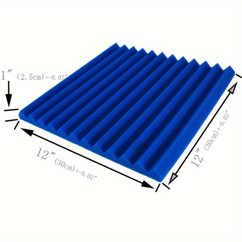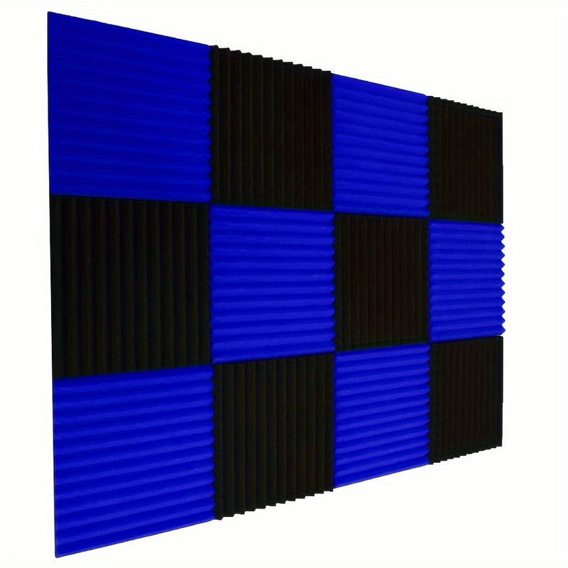 48 piezas de paneles acústicos de espuma en forma de cuña, 30 cm x 30 cm x 2.5 cm, 24 negros + 24 azules, para estudio de grabación, aislamiento de sonido